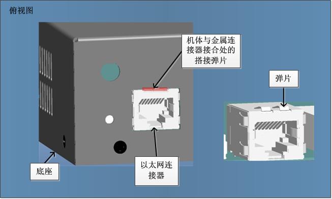(2) 機(jī)體與百兆以太網(wǎng)金屬連接器之間的接合處要增加彈片,使兩者接合時(shí)保持良好的導(dǎo)電性能。具體搭接方式如上圖所示: